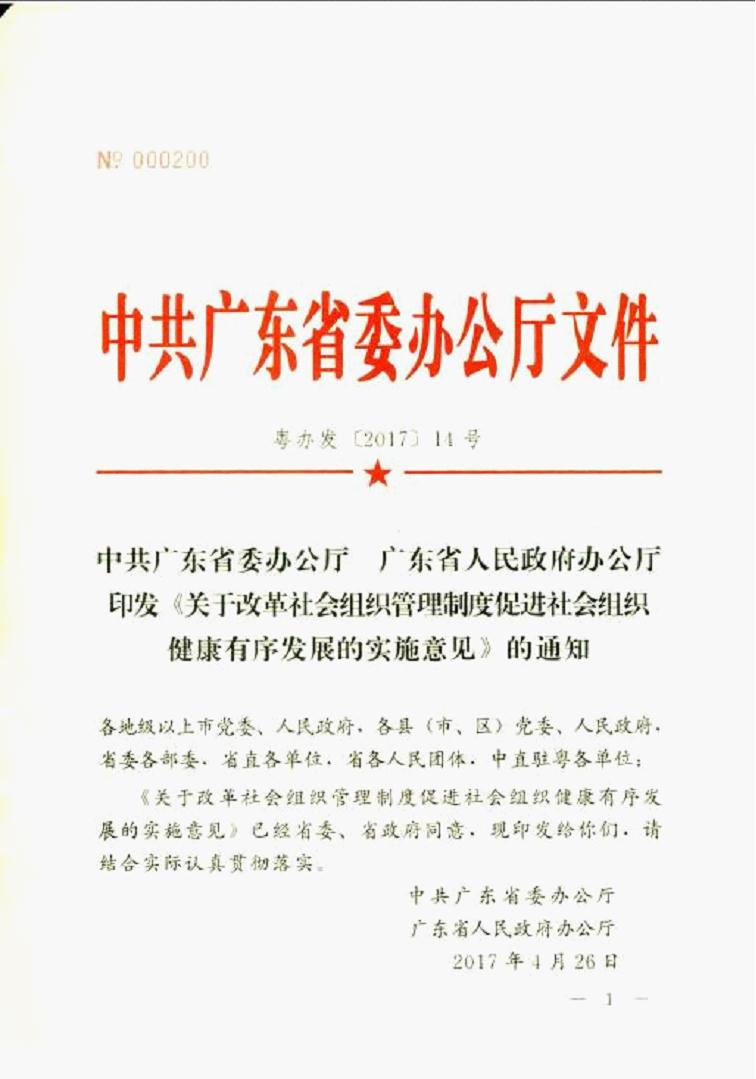 中共广东省委办公厅 广东省人民政府办公厅印发《关于改革社会组织管理制度促进社会组织健康有序发展的实施意见》的通知