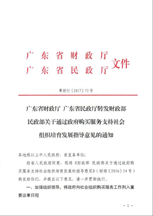 广东省财政厅 广东省民政厅转发财政部民政部关于通过政府采购服务支持社会组织培育发展指导意见的通知