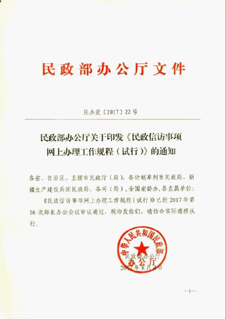 民政部办公厅关于印发《民政信访事项网上办理工作规程(试行)》的通知.pdf