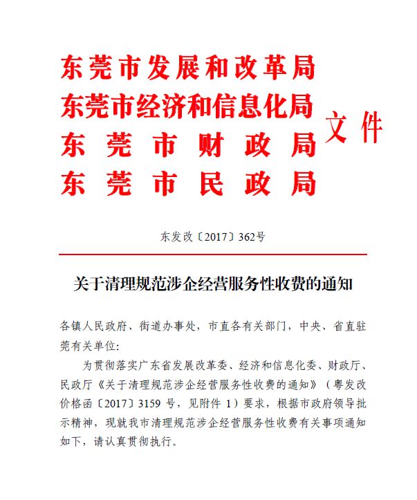 (东发改〔2017〕362号)关于清理规范涉企经营服务性收费的通知.pdf
