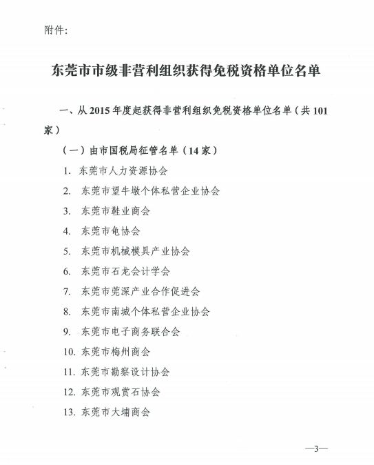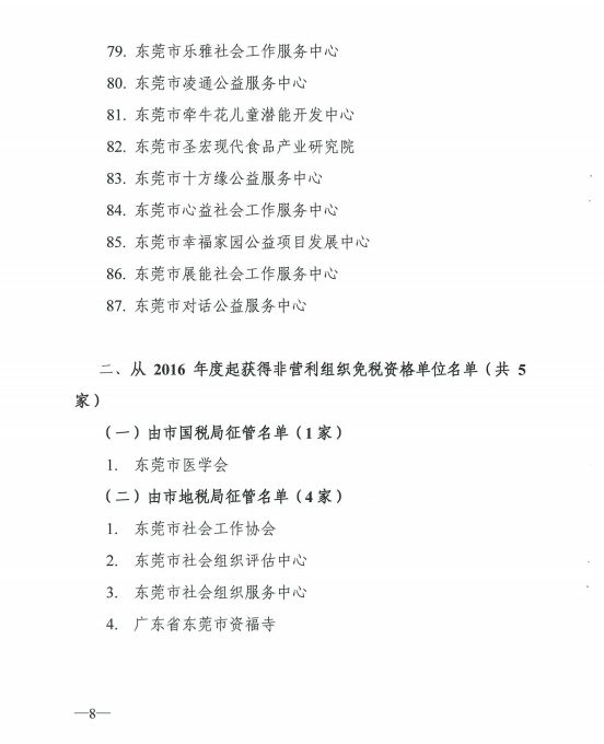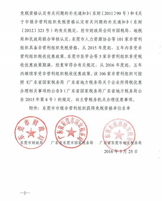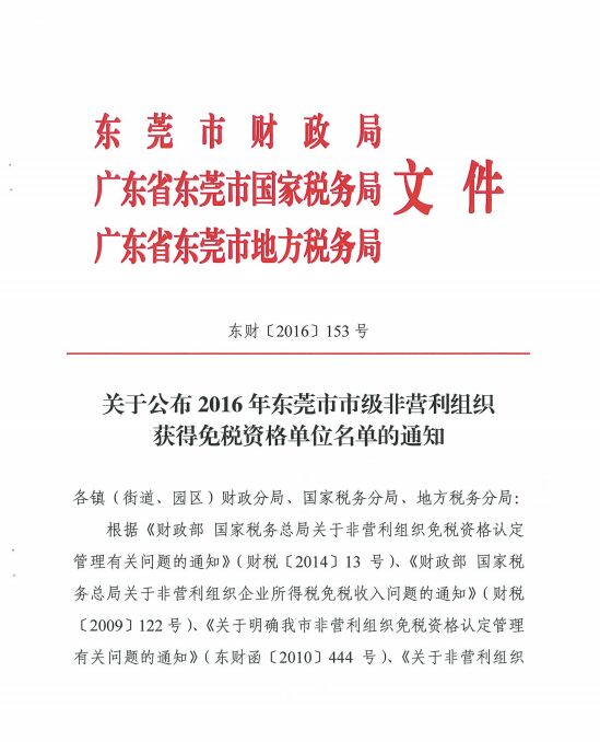 关于公布2016年东莞市市级非营利组织获得免税资格名单的通知