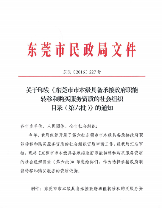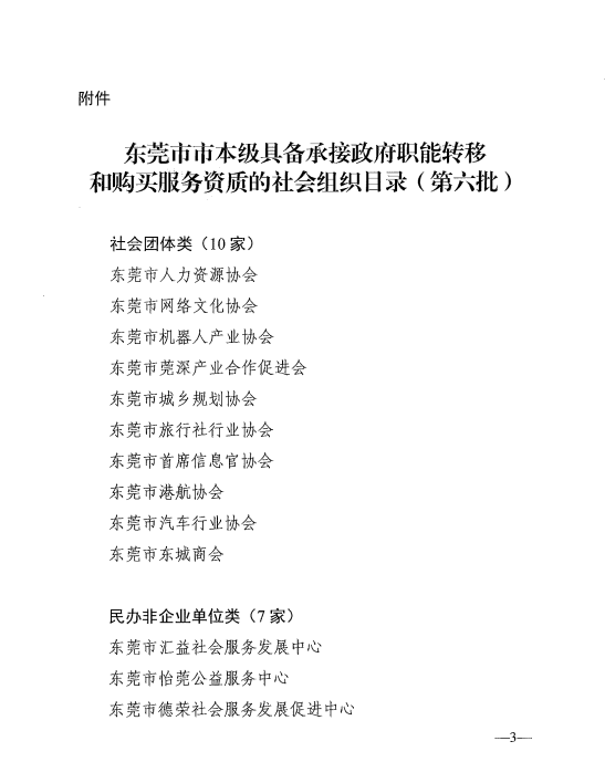 关于印发《东莞市市本级具备承接政府职能转移和购买服务资质的社会组织目录(第六批)》的通知