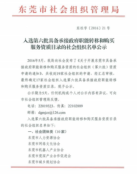 入选第六批具备承接政府职能转移和购买服务资质目录的社会组织名单公示