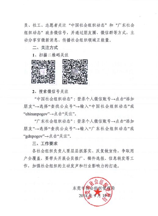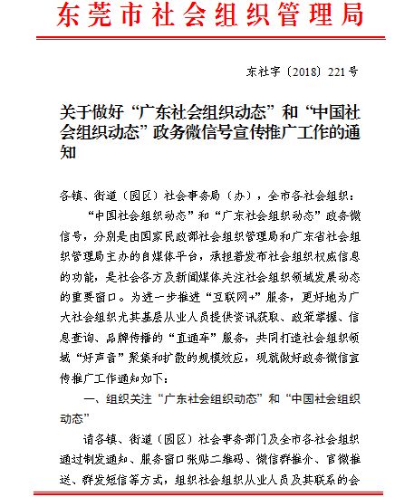 关于做好“中国社会组织动态”和“广东社会组织动态”政务微信号宣传推广工作的通知