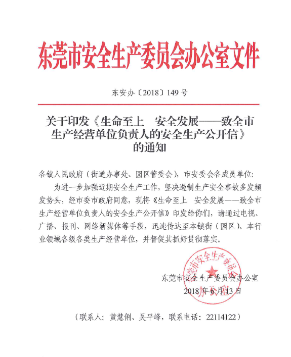 东安办〔2018〕149号关于印发《生命至上安全发展——致全市生产经营单位负责人的安全生产公开信》的通知.pdf