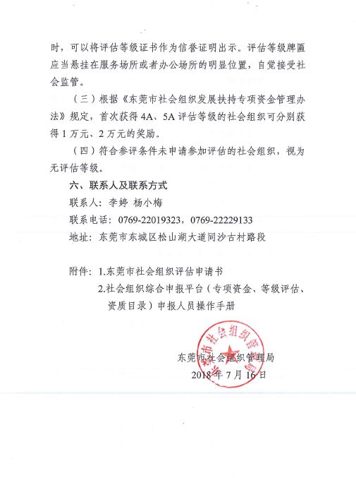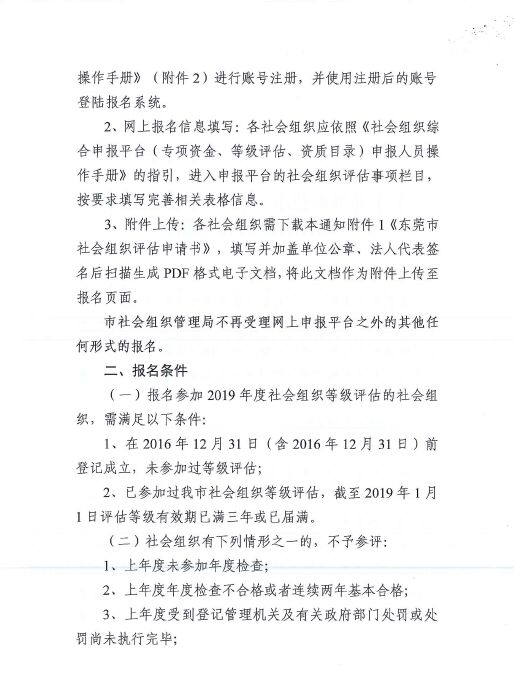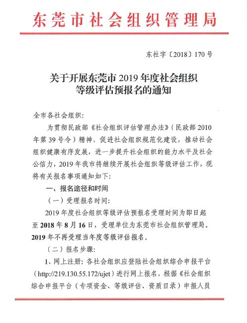 关于开展东莞市2019年度社会组织等级评估预报名的通知