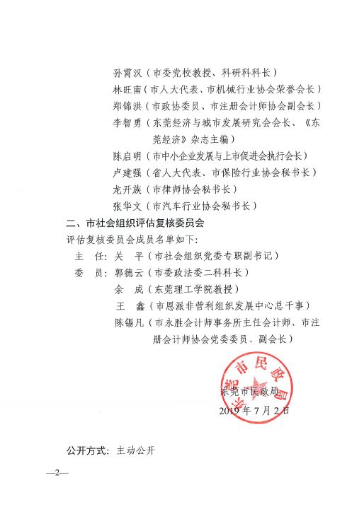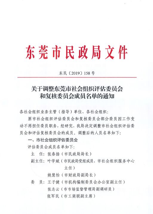 关于调整东莞市社会组织评估委员会和复核委员会成员名单的通