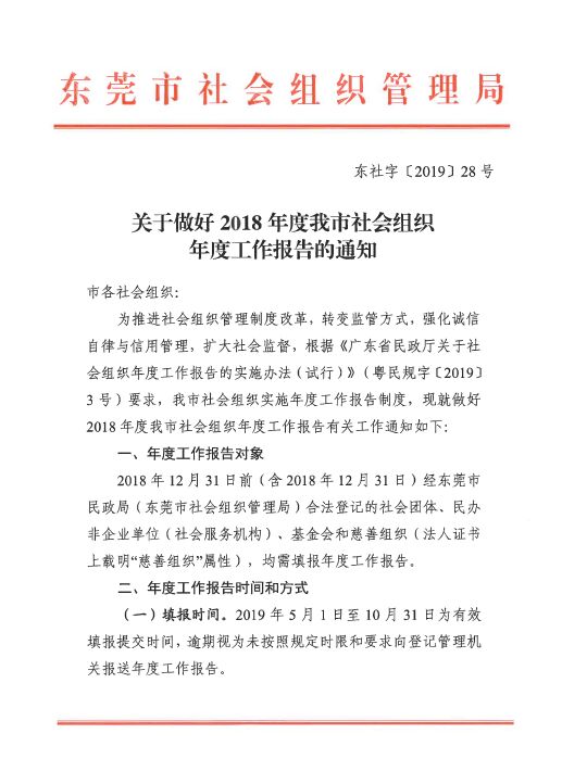 东社字〔2019〕28号20190516 关于做好2018年度我市社会组织年度工作报告的通知.pdf