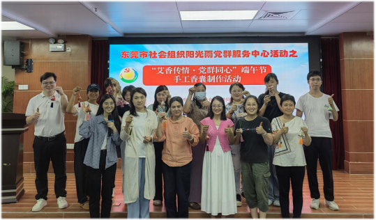 近日,在中共东莞市社会组织委员会、东莞市社会组织事务中心的指导下,市社会组织“阳光雨”党群服务中心举办了“艾香传情·党群同心”端午节手工香囊制作活动,近30名党员及群众踊跃报名参与。