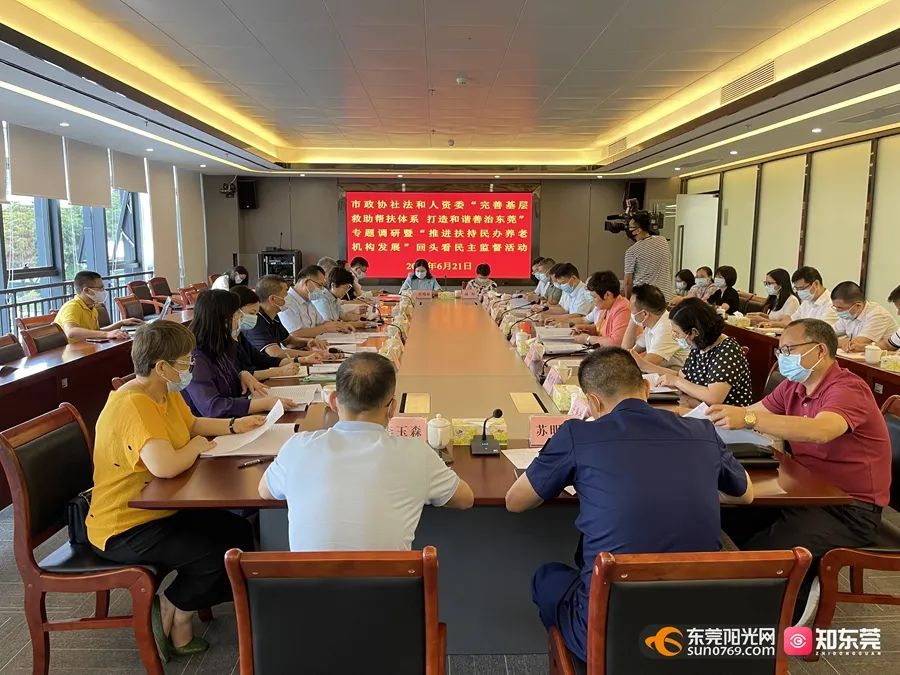 6月21日下午,市政协党组书记、主席陈文明率队开展“完善基层救助帮扶体系 打造和谐善治东莞”专题调研暨“推进扶持民办养老机构发展”回头看民主监督活动。市政协副主席蒋小莺、秘书长卢汉彪,部分政协委员、相关部门和镇街负责人参加调研。