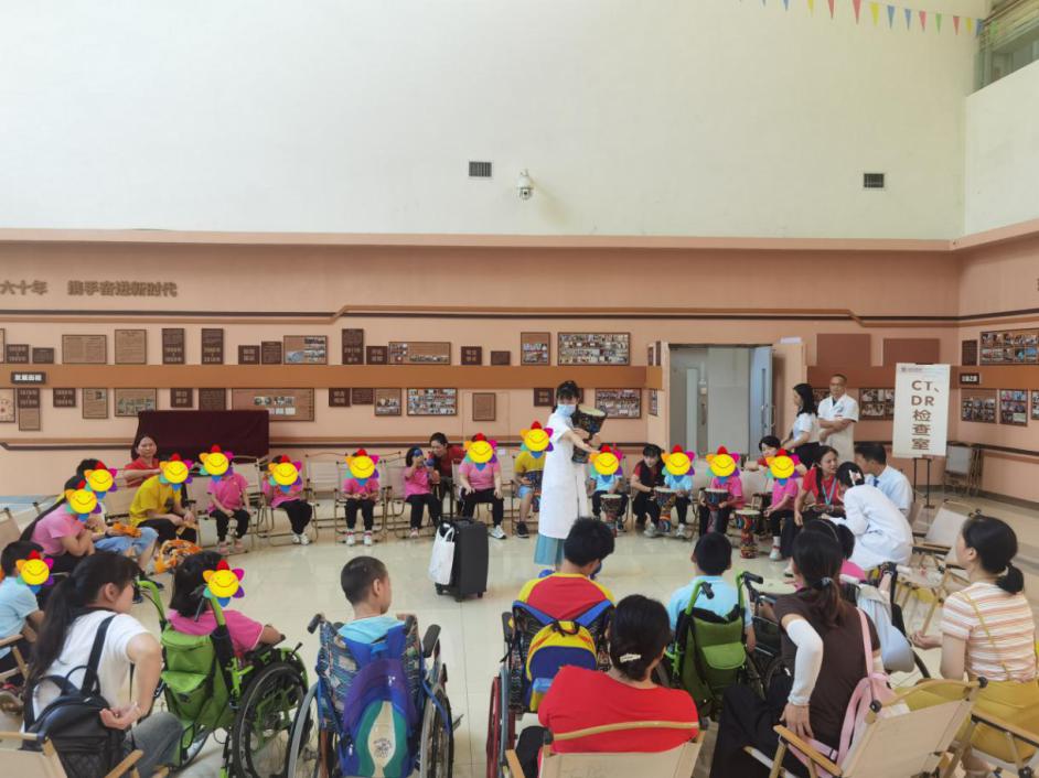 9月28日,“夏之风,麦岛上的精灵”畅游身心趣味活动,市社会福利中心党员干部带着21名残障少年儿童来到市第七人民医院,在这座疗愈小岛上CityWalk。看,先来一场心灵SPA,孩子们参与了鼓圈疗法体验,跟着音乐的节拍,奏响手中的音砖、响板、串铃、卡巴萨等乐器,富有节奏感的音乐在大厅里回响律动他们随着音乐节奏放松了心情,体验音乐对心灵的疗愈,传递积极的精神力量。