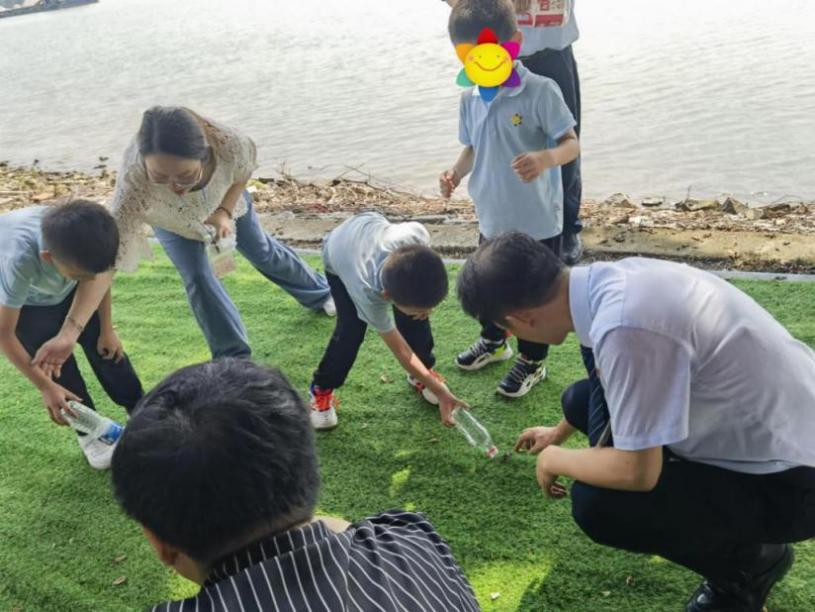 最后一个特别节目就是城区别的地方都没有的——捉蟛蜞。潘海恩书记为他们在江边翻找蟛蜞、贝壳、小鱼仔,很快就捉到了几个小蟛蜞,红红的腰身,白白的螯钳,他高兴得向岸上的孩子们挥舞着手喊:“快看,我找到宝贝了!”孩子们兴奋举起矿泉水瓶子嘟囔着:它是我的朋友,我要带回家!