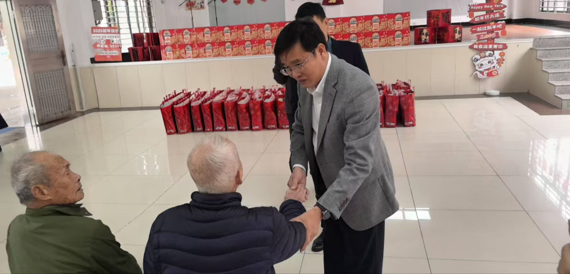 随后,黄荣峰前往老人区,与老人亲切交谈,详细了解他们的生活、健康情况,送上新春祝福,并为老人派送慰问品,老人脸上都洋溢着幸福的笑容。