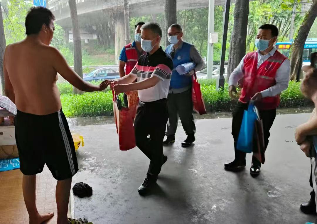 8月4日晚,特大暴雨突袭我市,全市拉响暴雨红色、橙色预警,街面生活无着流浪人员的安危牵动着民政人的心!8月5日,市民政局三级调研员、市慈善会常务副会长艾树珍带领市救助管理站、市慈善会工作人员,会同各镇街公共服务办、双百社工和爱心志愿者,在全市范围内开展街面巡查救助行动,劝导街面流浪人员进站求助或前往高处避险,结合近期“登革热和基孔肯雅热”疫情,给流浪人员发放防蚊爱心包,普及防蚊知识。