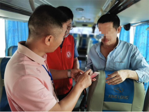今年5月,巡查小组就在蔡边村发现一名流浪女子。为此,工作人员多方联动确认该女子身份信息后,迅速与女子的家人取得联系,得知她家庭境况困难,难以支付其返乡费用。与此同时,大朗镇公共服务办联合“双百”社工、村委、志愿者积极主动对其进行帮扶。考虑到女子返乡路程远、风险大,工作人员号召社会爱心人士筹款帮助其顺利平安返乡,结束流浪生涯,回归家庭。
